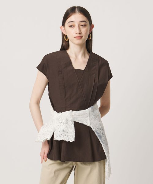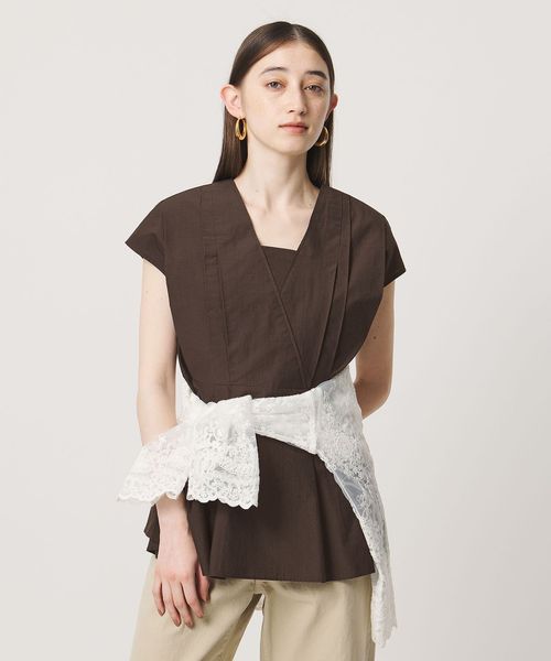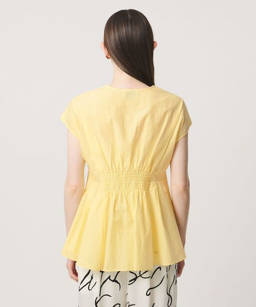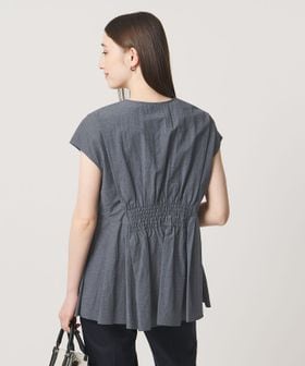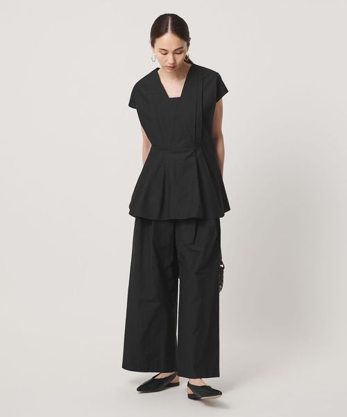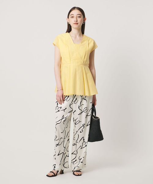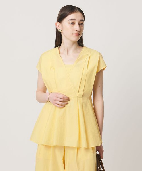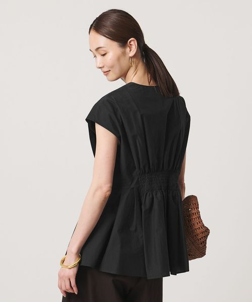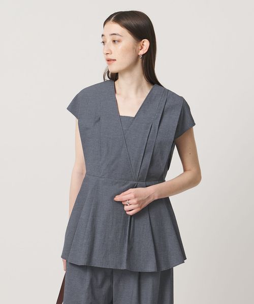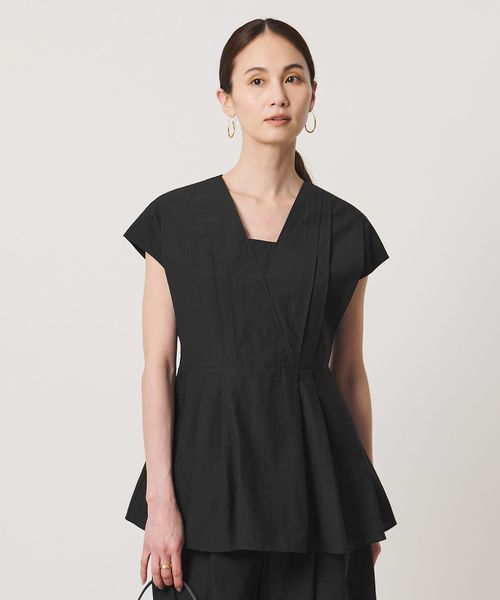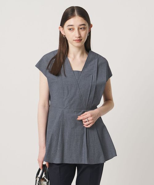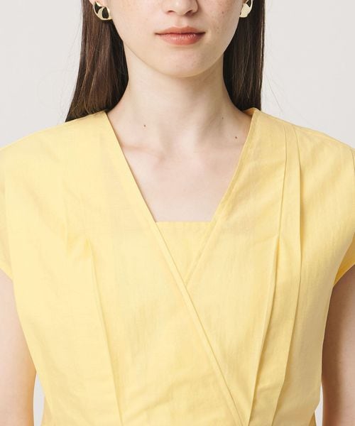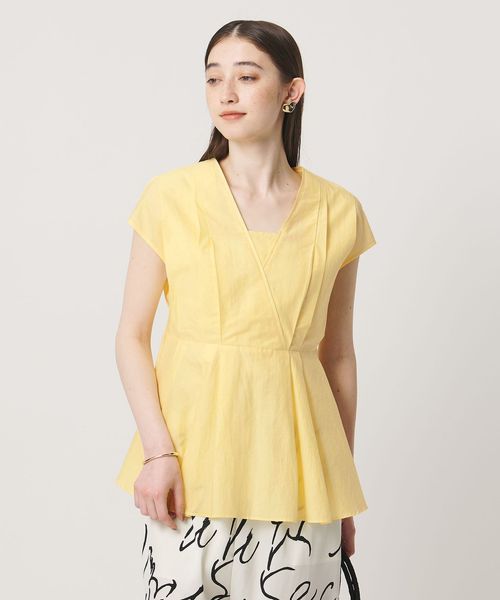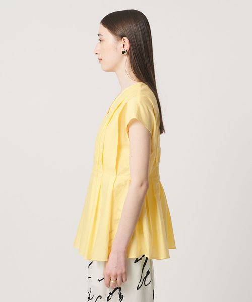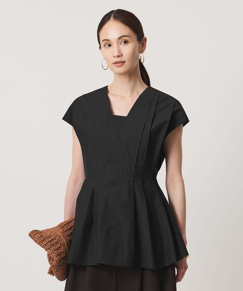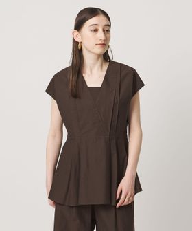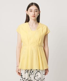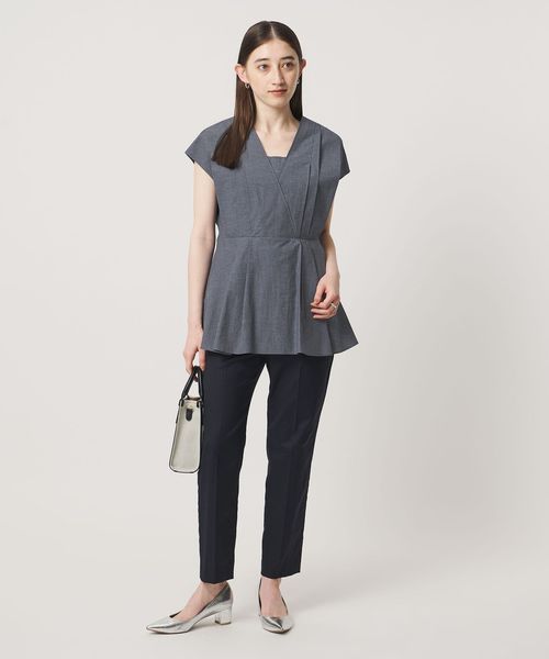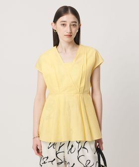 タックディテールとシャープなVネックが、顔まわりをすっきりと見せてくれるブラウス。