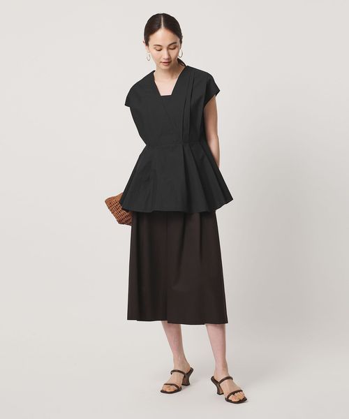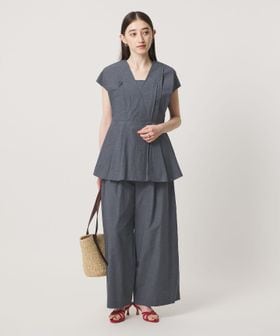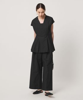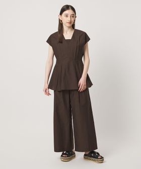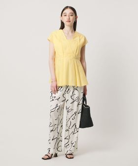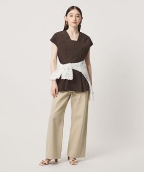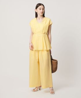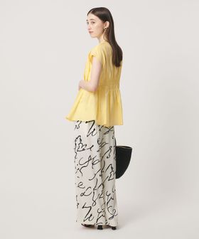 ウエストには絞りを入れ、裾に向かって緩やかに広がるシルエットに。