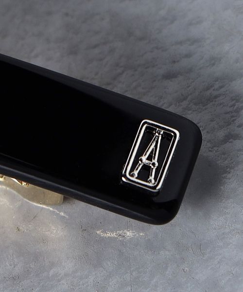 ブランドネームの頭文字「A]を象ったモチーフがワンポイントの細身のバレッタ。