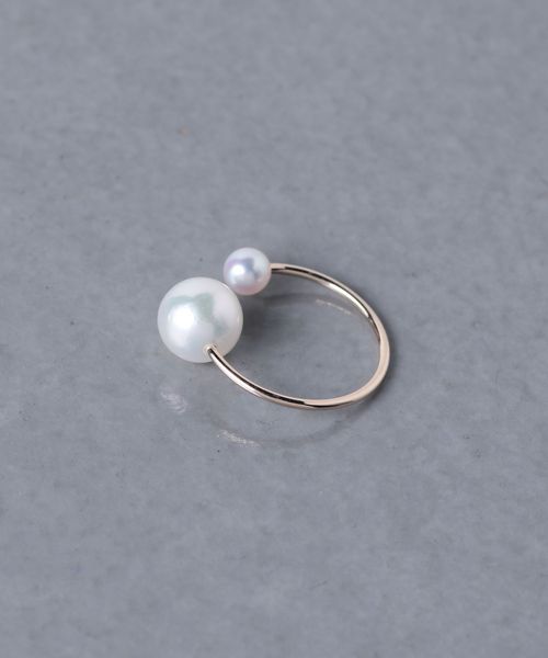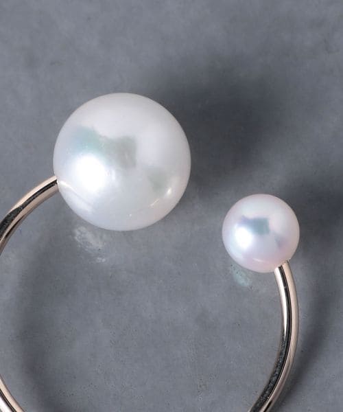 華奢なゴールドパーツの先端に大きさの違うアコヤパールをあしらった一品。