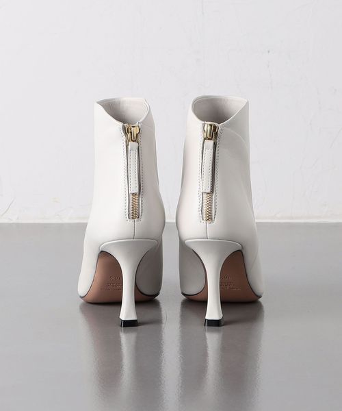 履き口の美しいカットやヒールに曲線を取り入れたフェミニンなバックジップブーツです。