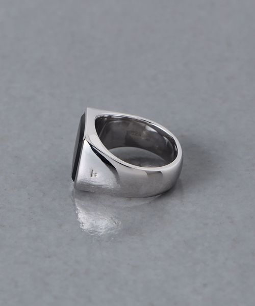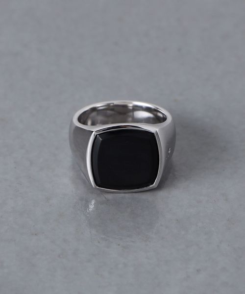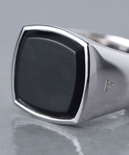 スクエアに象られたマットなブラックオニキスが存在感を放つ一品。