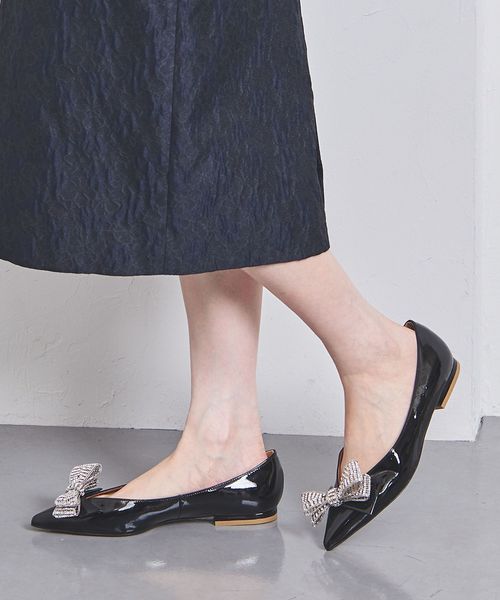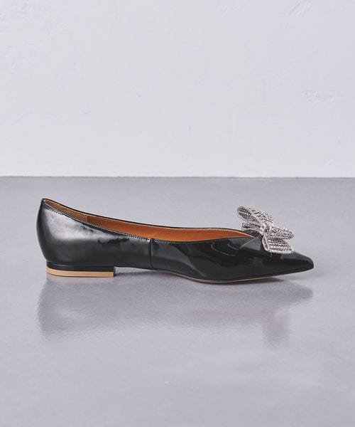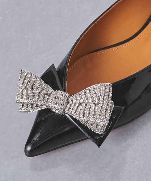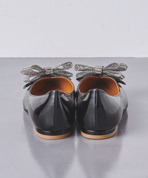 大ぶりなリボン型のビジューが付いたフラットパンプス
