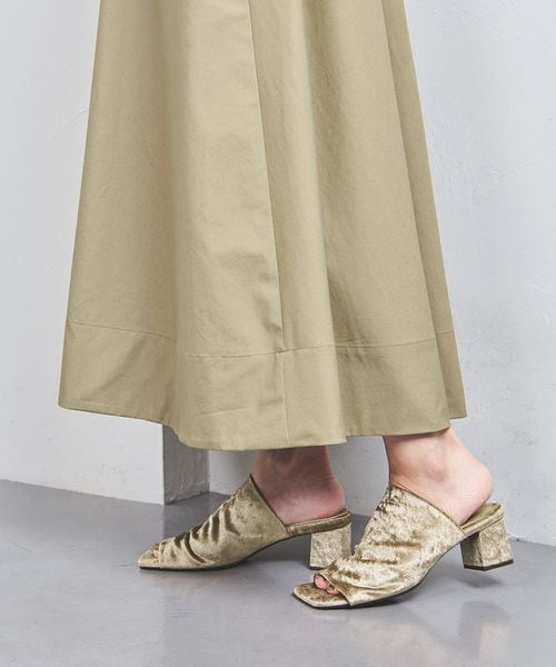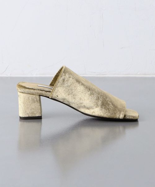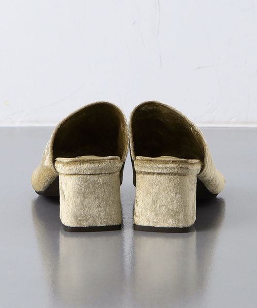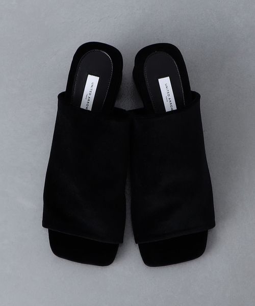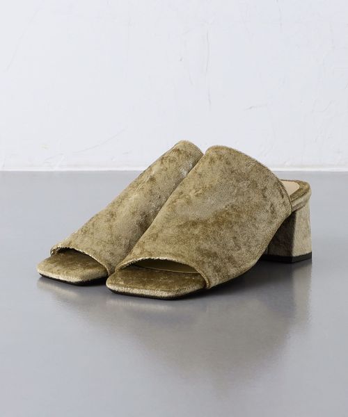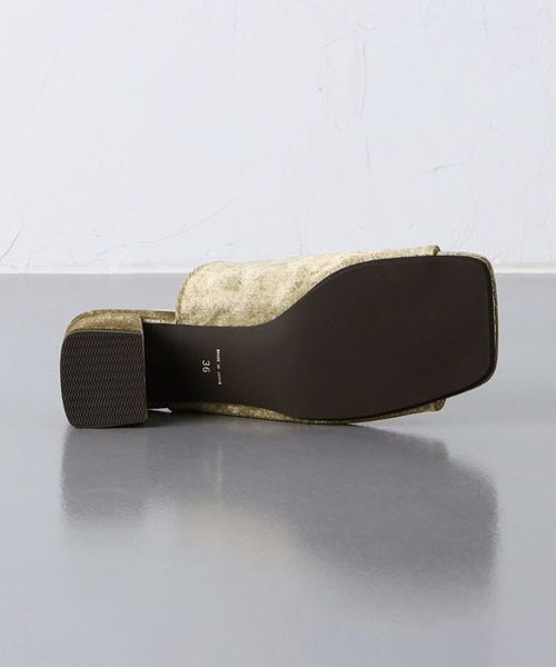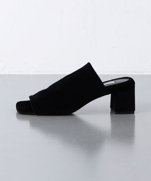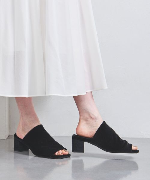 素材感が活きる深いアッパーのスクエアトゥミュール