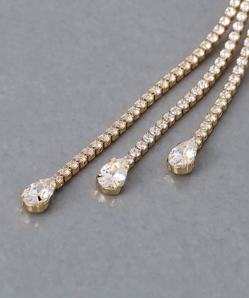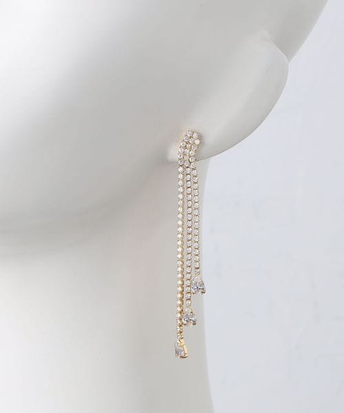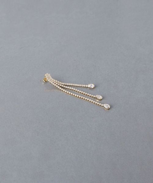 流れるようなデザインと雫型のビジューがポイントのピアス