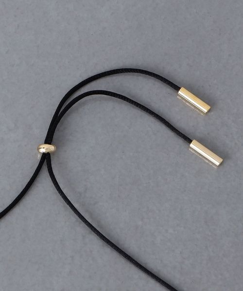 スライドパーツで長さのアレンジができ、肌当たりの優しいサテンコードを使用しています。