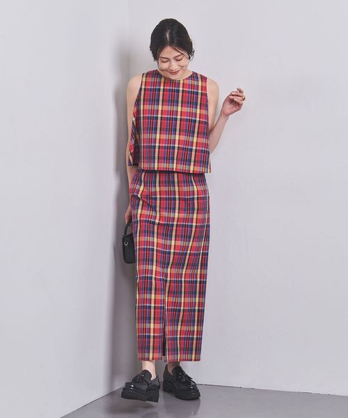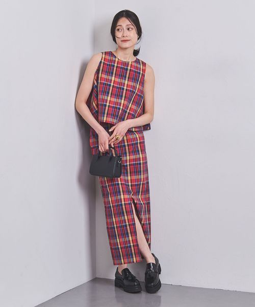 チェックなどの柄物アイテムに取り入れることで、コーディネートの引き締め役に。
