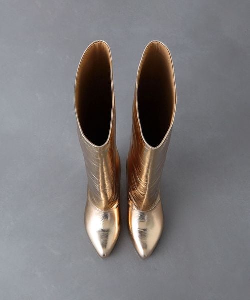 艶やかなメタリック素材がコーディネートにインパクトを与えるブーツ