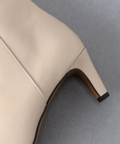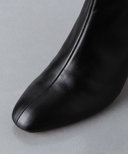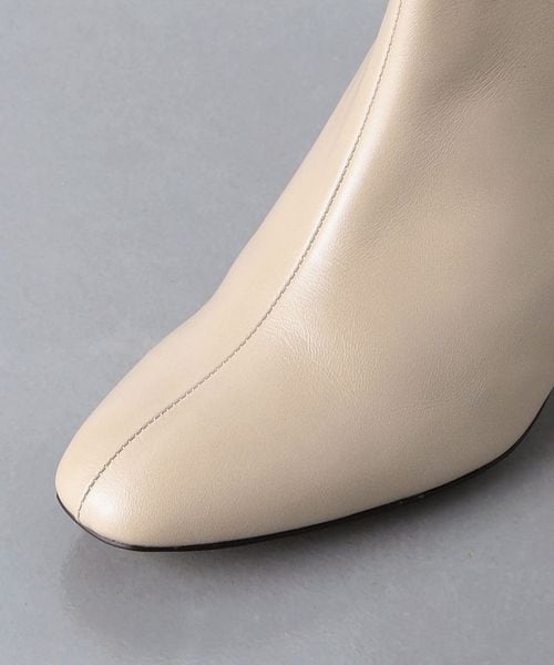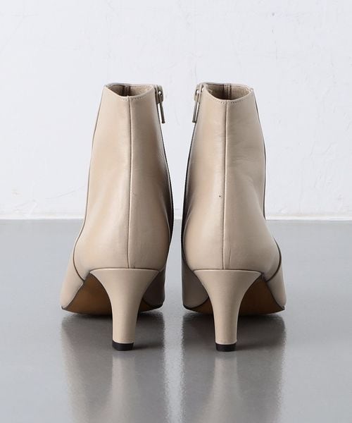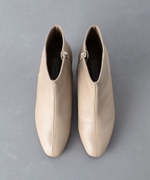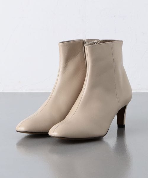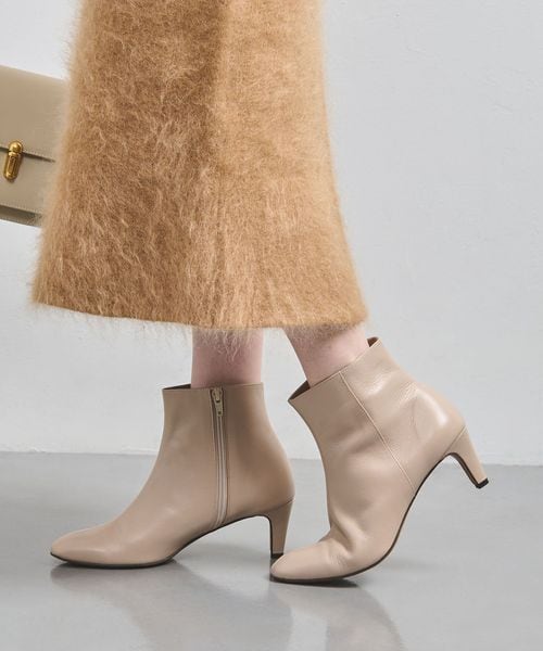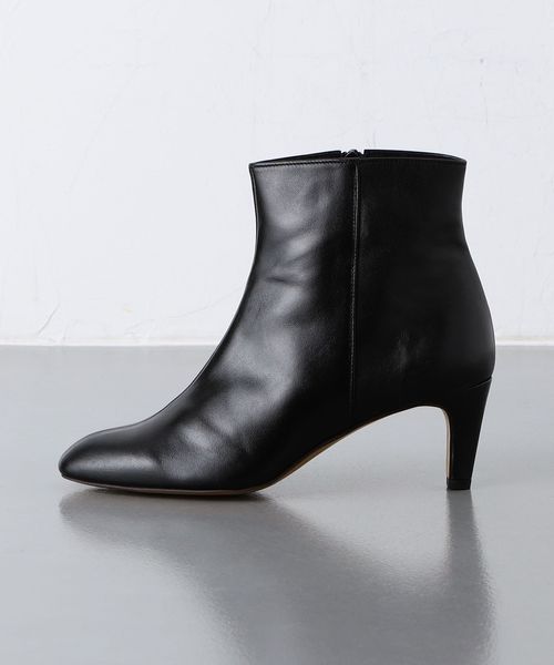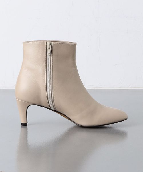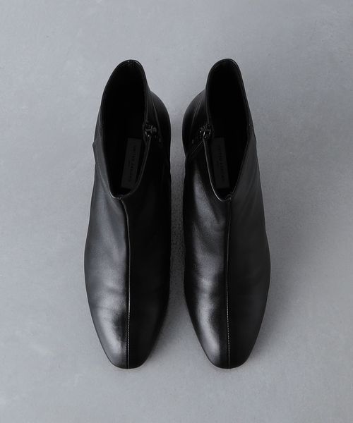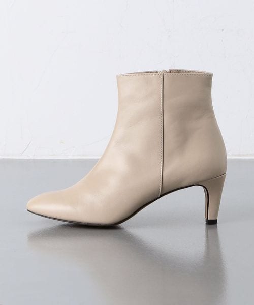 やや丸みがありながらもすっきりと見えるトゥが魅力的なレザーのショートブーツ。