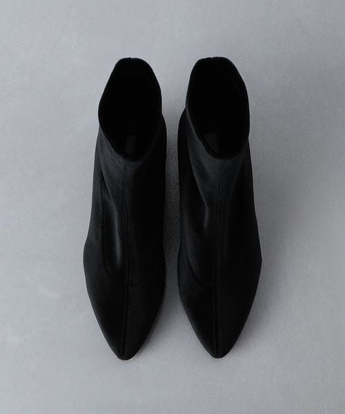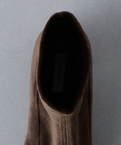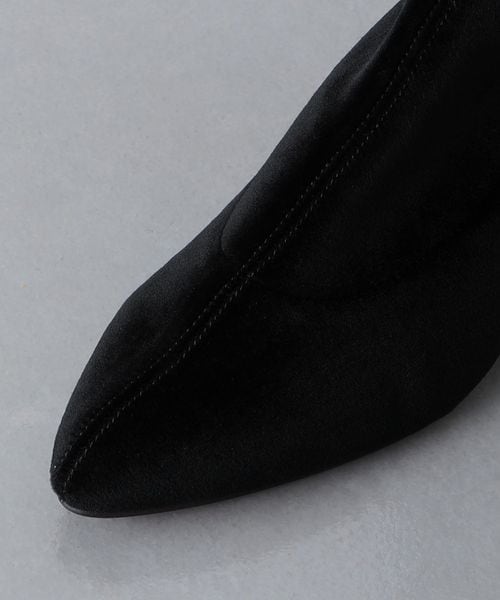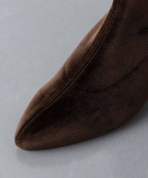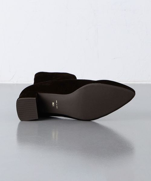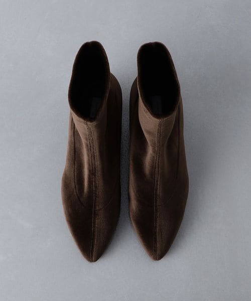 フィット感のある柔らかなべロア素材でお作りしたポインテッドトゥショートブーツ。