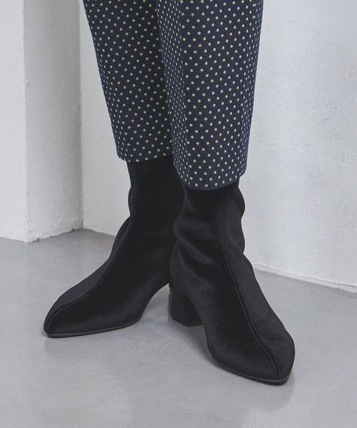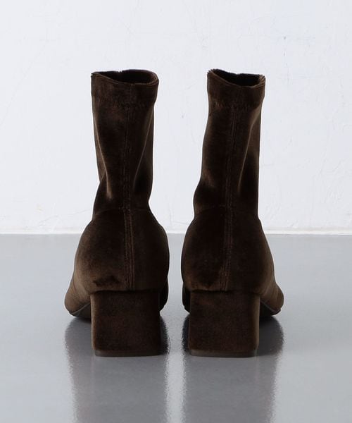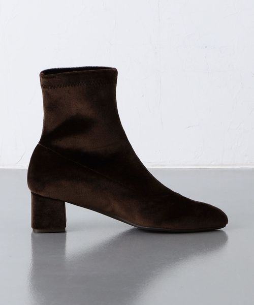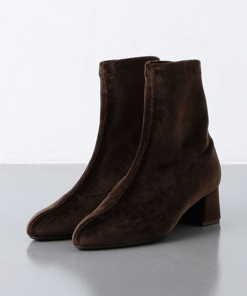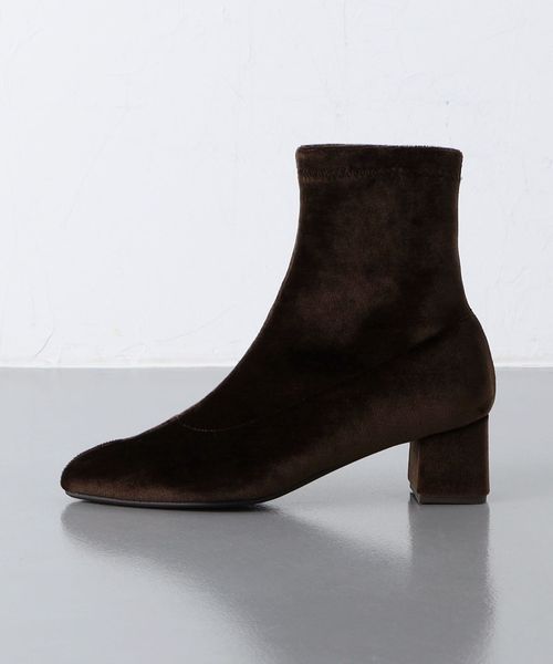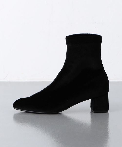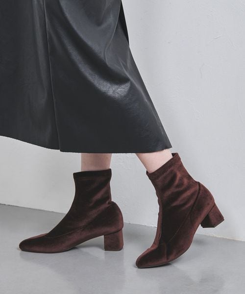 季節感のあるスタイルが完成するストレッチベロア素材のショートブーツ