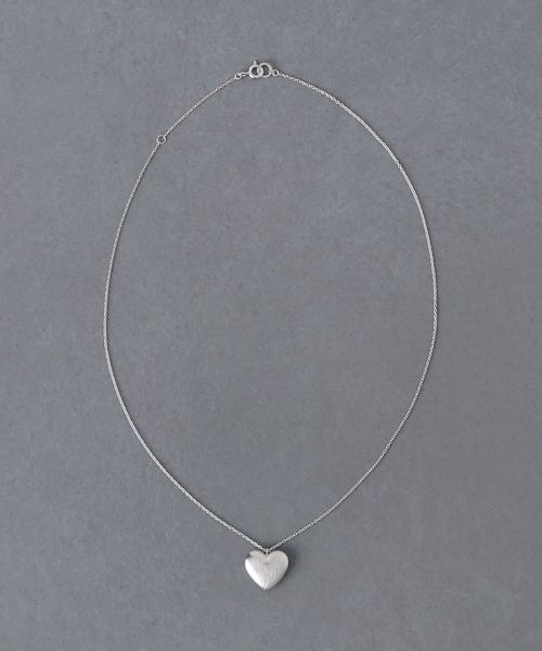 マットな質感の中にほんのり光沢のあるハートモチーフをトップに配したネックレス。