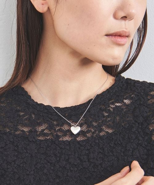 マットな質感の中にほんのり光沢のあるハートモチーフをトップに配したネックレス。