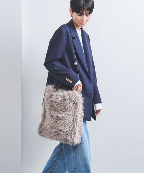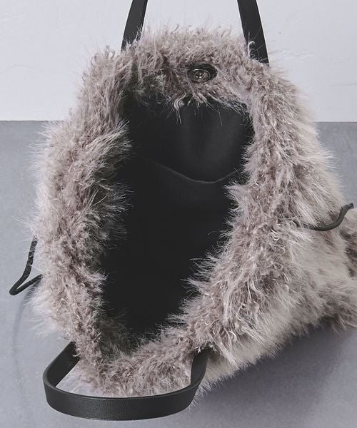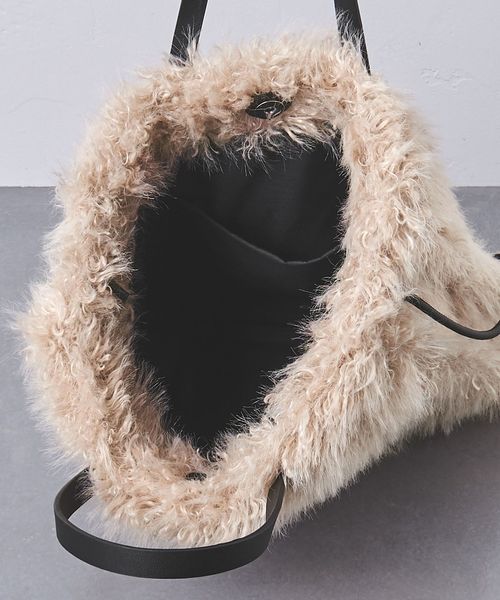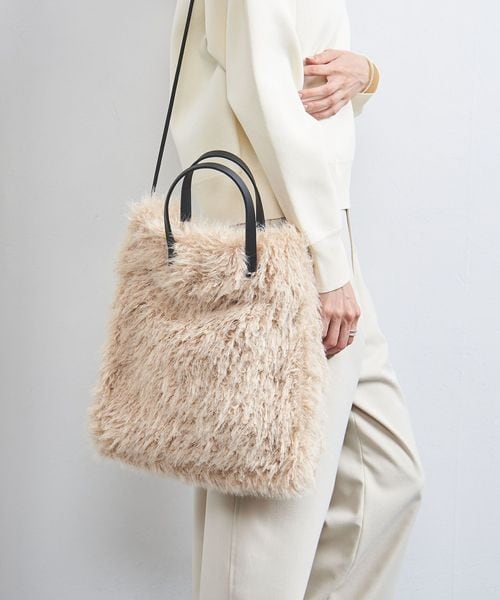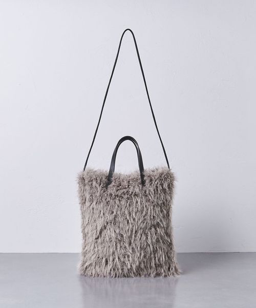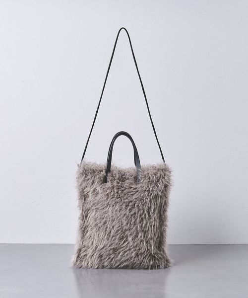 ウェイビーなフェイクファーの質感を活かしたシンプルなタテ型トートバッグ