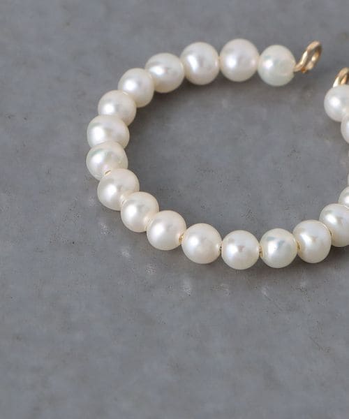 シンプルながらもパールが上品な存在感を放ち、お手持ちのピアスやイヤリングとあわせたり、サイズ違いでの重ね付けもおすすめです。
