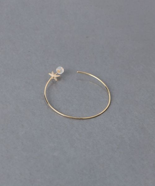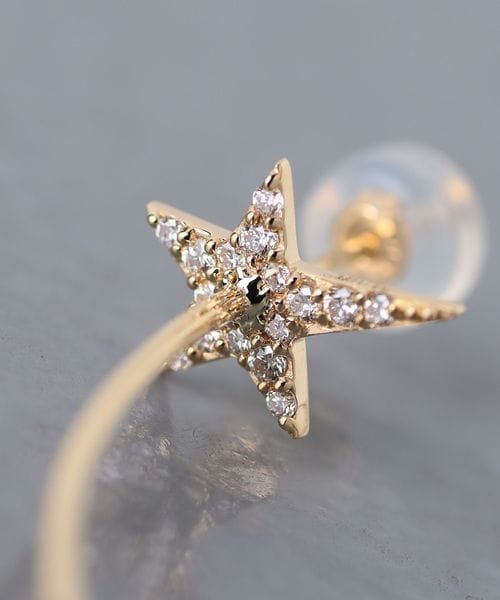 ダイヤモンドが煌めくアシンメトリーのスターモチーフをあしらったフープピアス