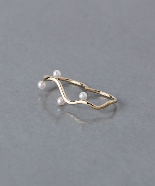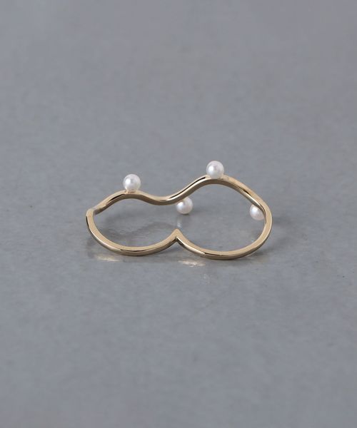 ゴールドの滑らかな質感に、あこやパールを散りばめたダブルリング。