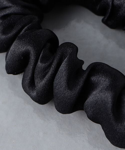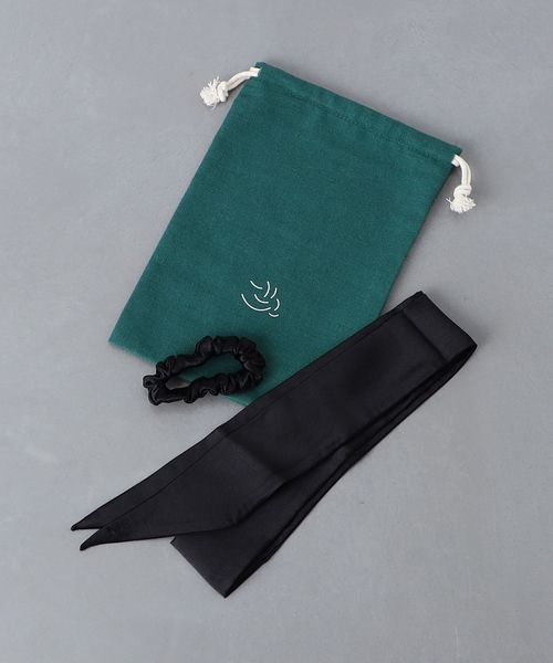 摩擦を軽減し髪に優しいシルク素材を用いたシュシュとリボン。
