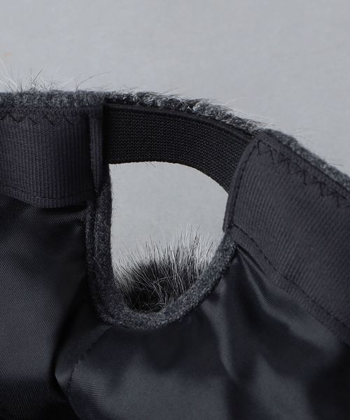 ベルト部分の裏側にゴムをあしらい、頭囲に自然にフィットするよう仕上げています。