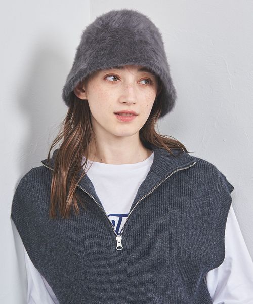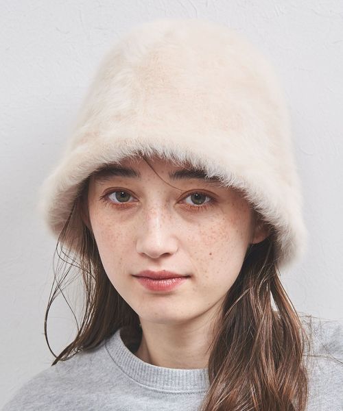 目深な角度のブリムが顔まわりをコンパクトにみせてくれる一品。