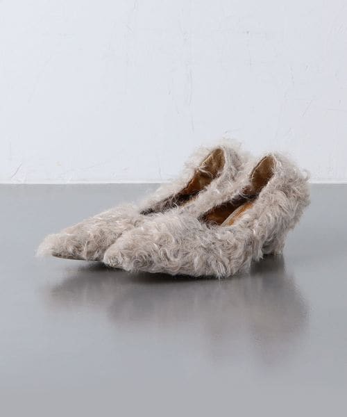 履き口にゴムが入った「PINA」というパンプスをフェイクファー素材で別注。
