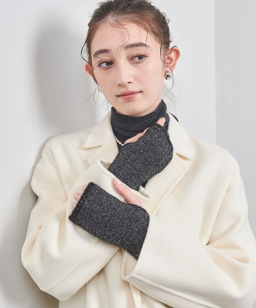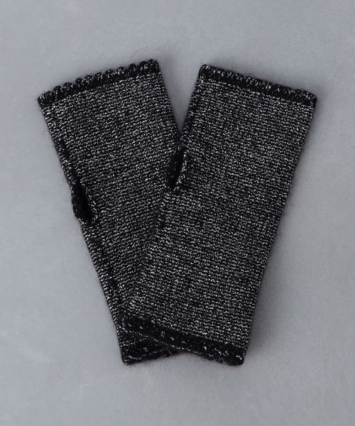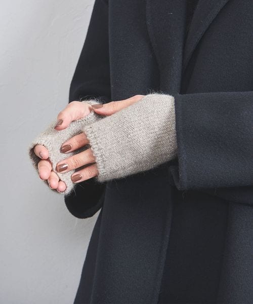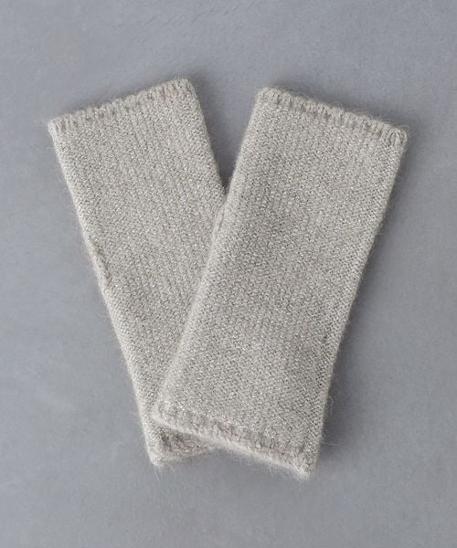 毛(タヌキ)にラメ糸を引き揃えたニットフィンガーレスグローブ。
