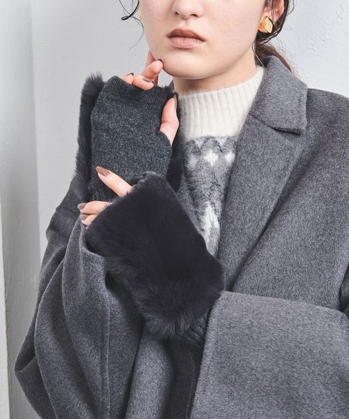 定番人気のレッキスラビットファーとニットコンビのフィンガーレスグローブ