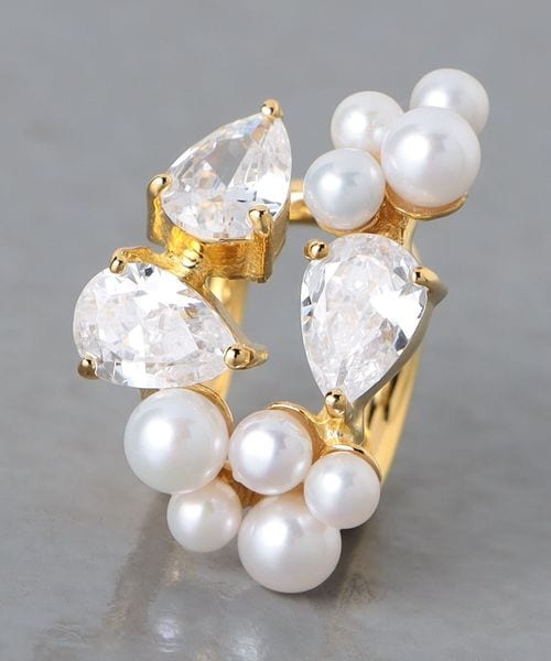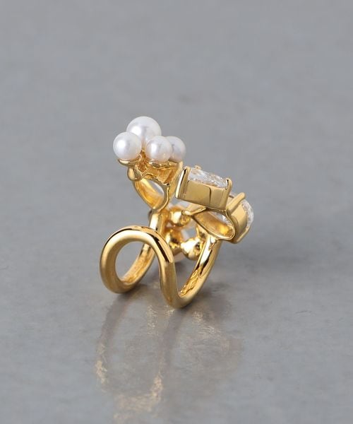 <Completedworks>淡水パール×ビジュー イヤーカフ