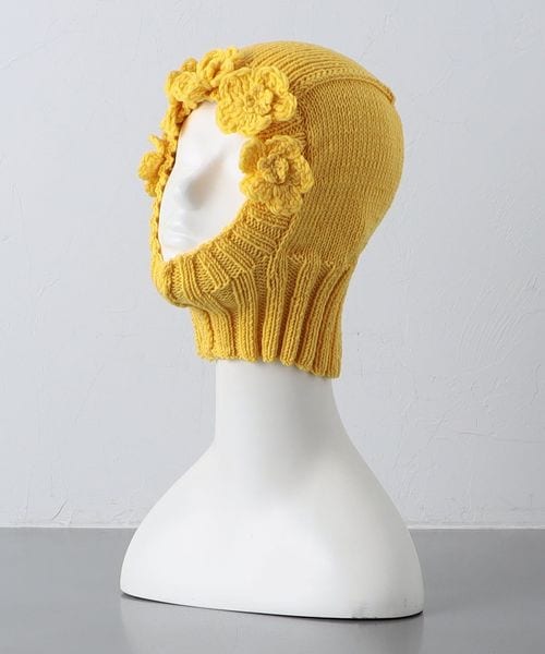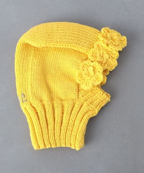 顔周りに花のモチーフをあしらった愛らしいバラクラバ。