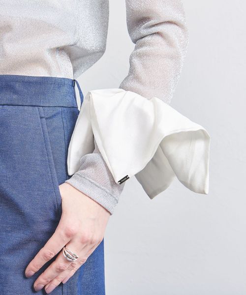 ほのかな光沢がエレガントな雰囲気漂うスクエアシュシュ