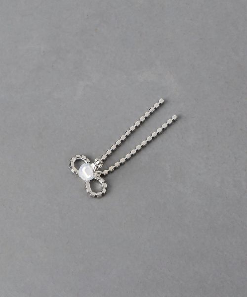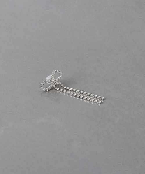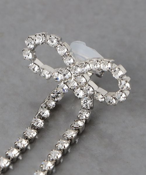 トレンドのリボンモチーフにラインストーンをあしらったイヤリング。