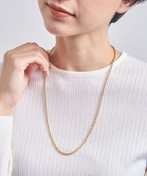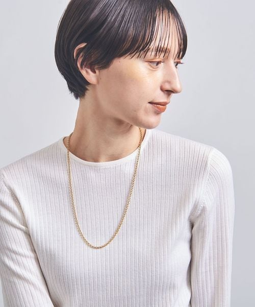 適度なボリュームと存在感のあるラウンドチェーンは、ミニマルなスタイリングに加えるだけで都会的な印象に。