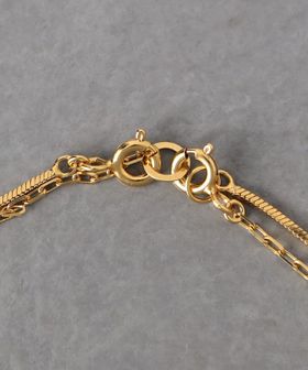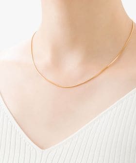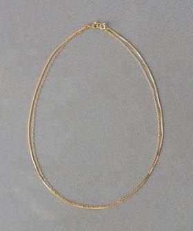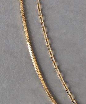 首元に溶け込むような繊細なスネークチェーンとレクタングルチェーンをセットにしたデザイン。