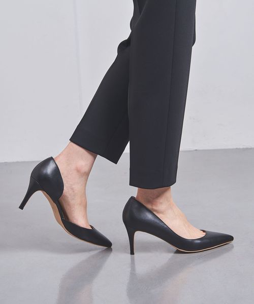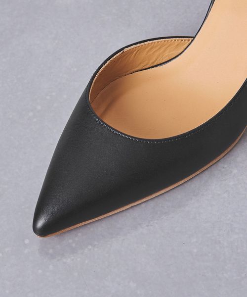 内側サイドをオープンデザインにしたポインテッドトゥパンプス