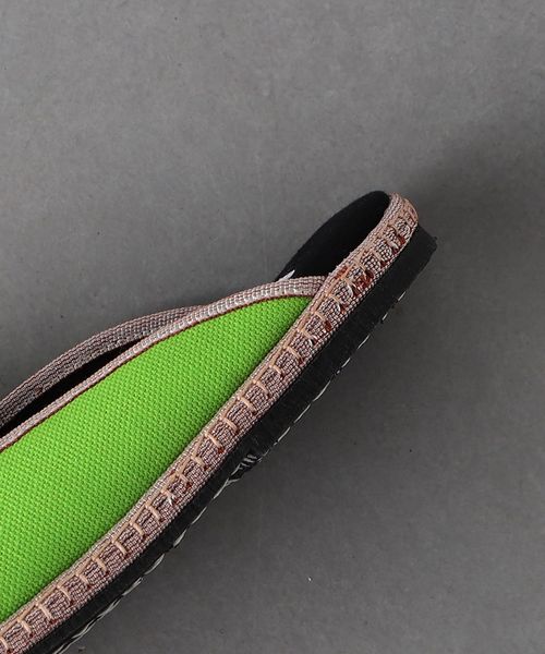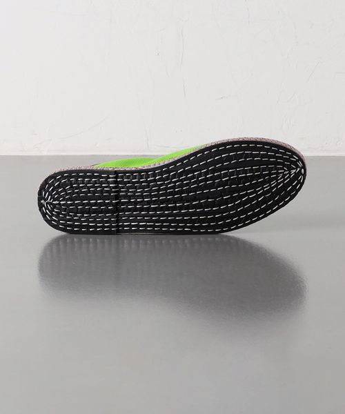 生産の過程では環境負荷や人体への影響を考え、接着剤を一切使わずに伝統的な手間のかかるステッチによるソール付けの技術を用いて、自然なソールの返りをうみだし、履き心地の良さへとつながっています。