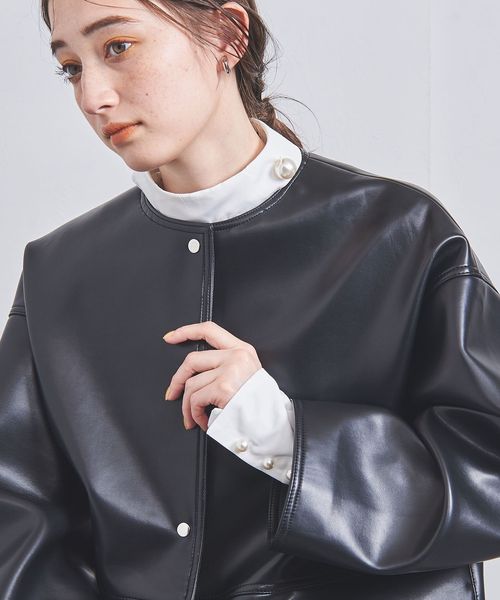 イミテーションパールを使った付け襟(対象品番:17495991282)とセットでお使いいただくのもおすすめのアレンジです。