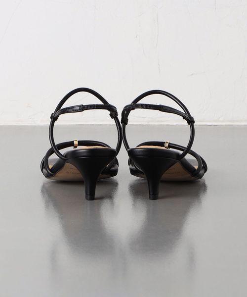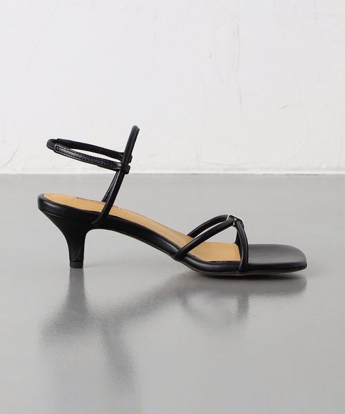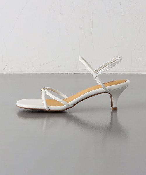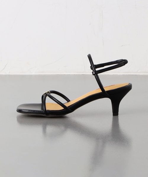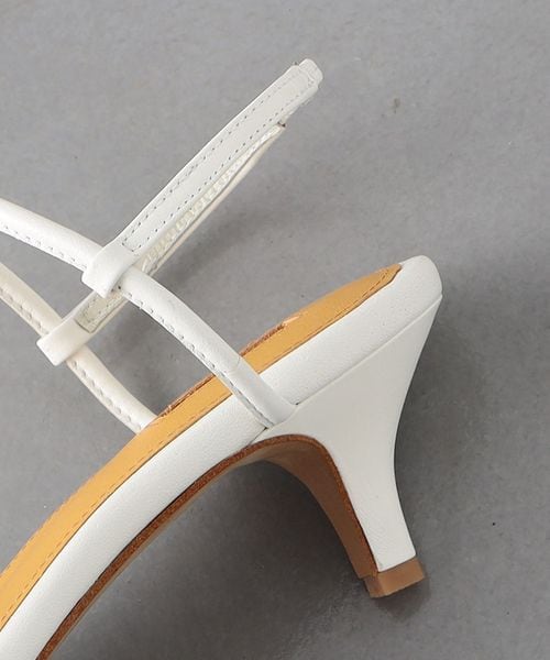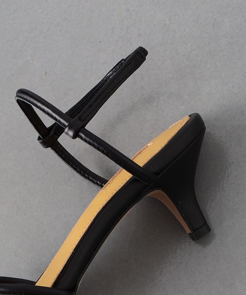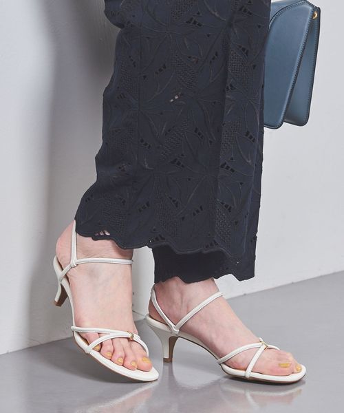 足を華奢にみせてくれる細身のクロスストラップがポイント。
