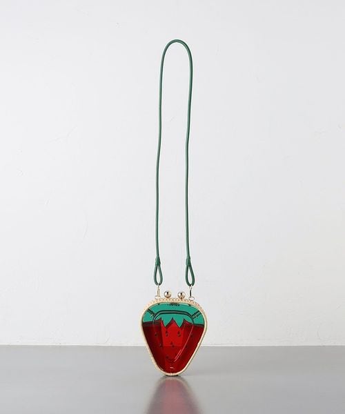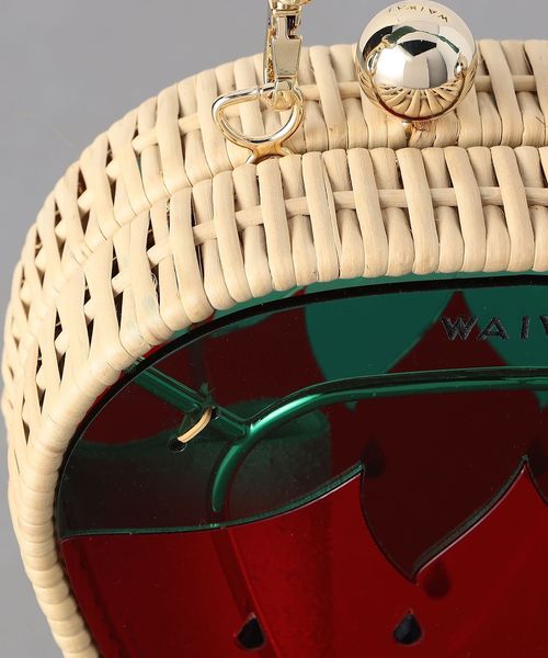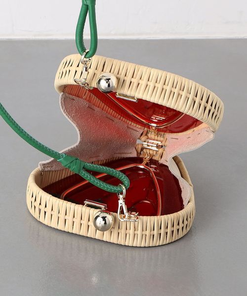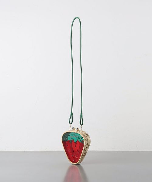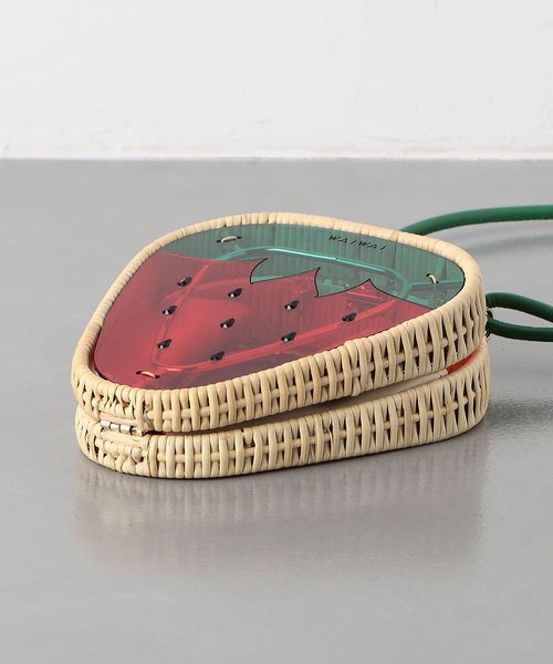 手編みのカゴとカラーパネルでイチゴを表現したバッグ