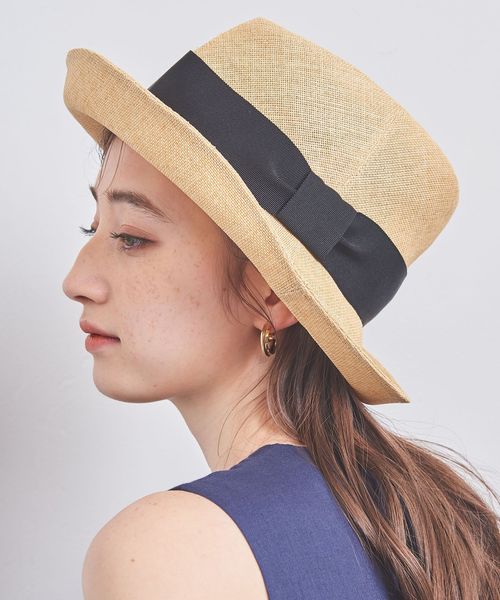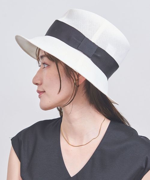 反ったプリムが顔周りに可愛らしい印象を添えるハット。