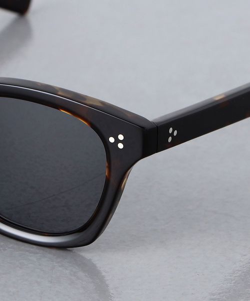 DK.BROWNカラーはべっ甲柄の素材の上に1mmのクリアブラウンの層がある2層構造の<BLANC>特注品。濃いめのグレーレンズを合わせてスタイリッシュで王道感のある仕上がりです。