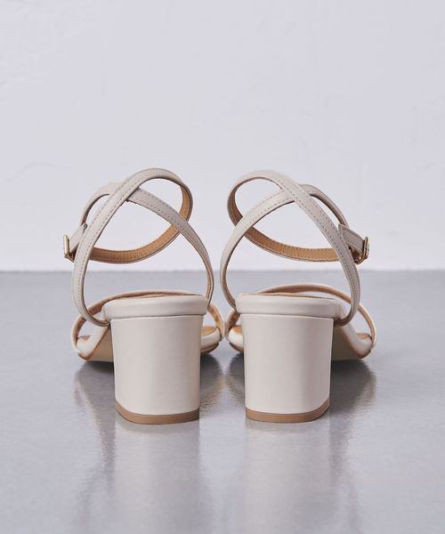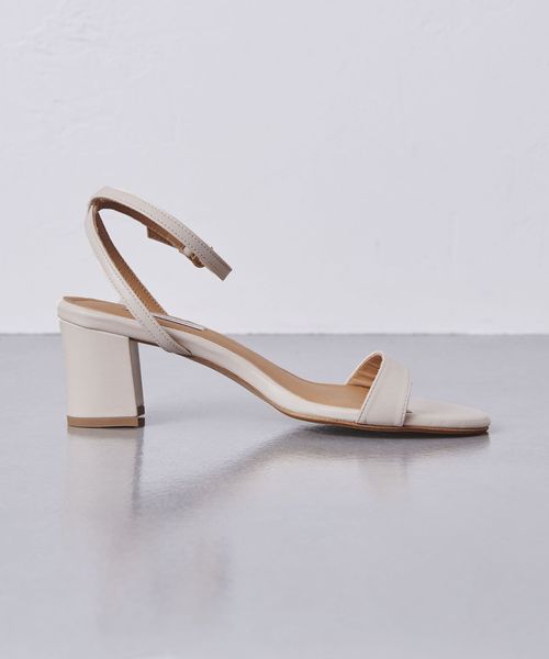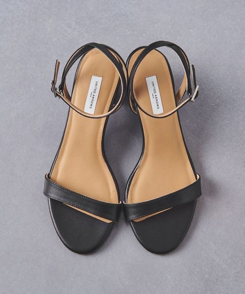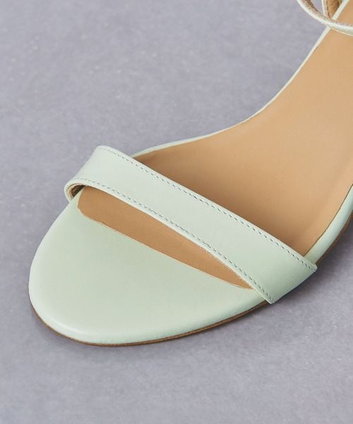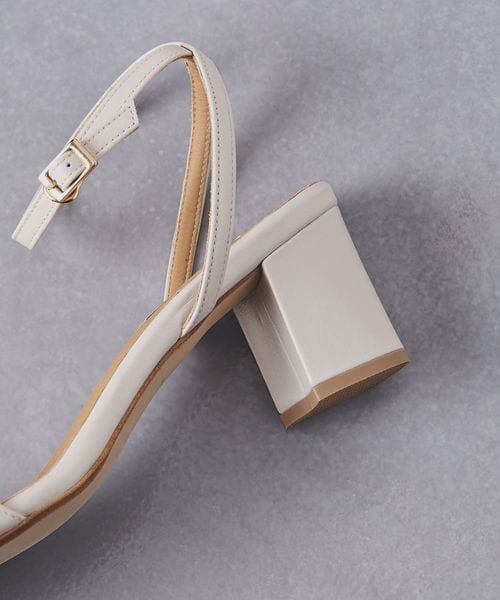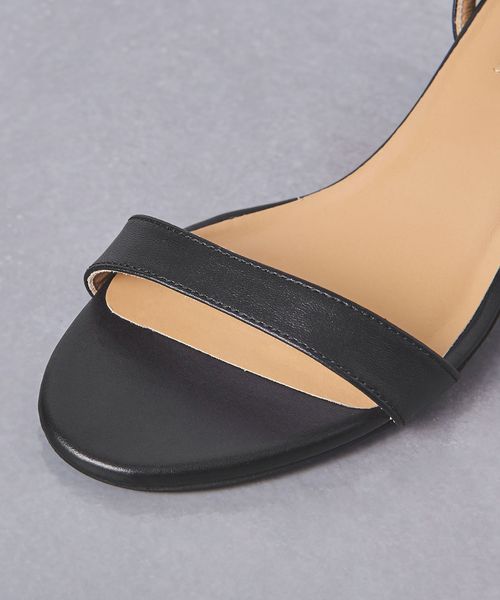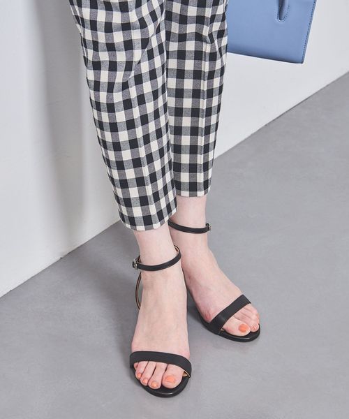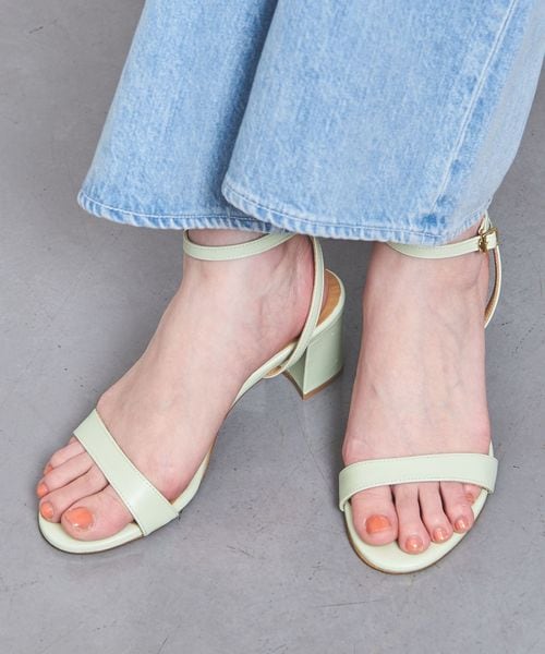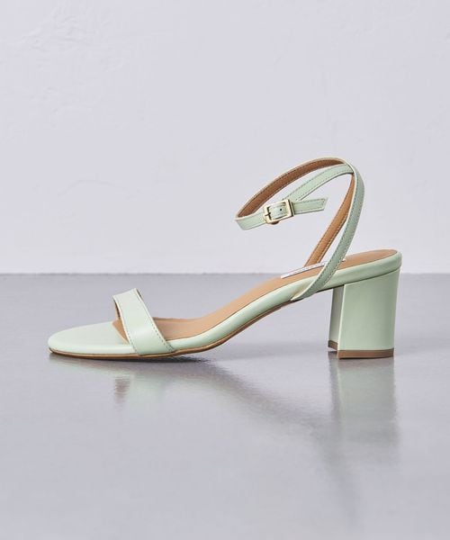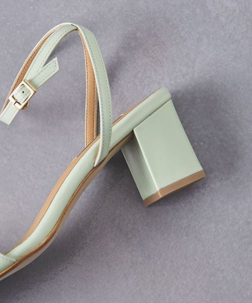 華奢なアンクルストラップのチャンキーヒールサンダル