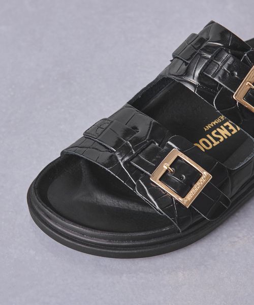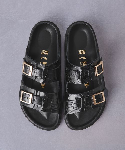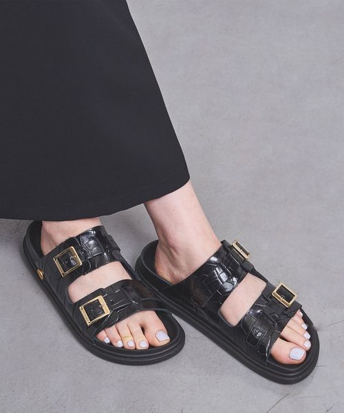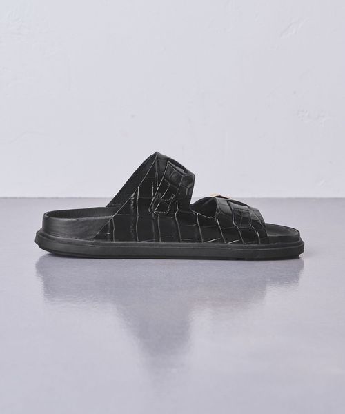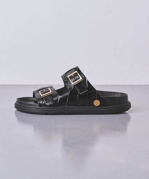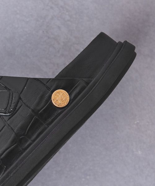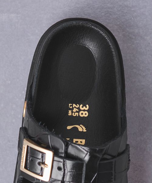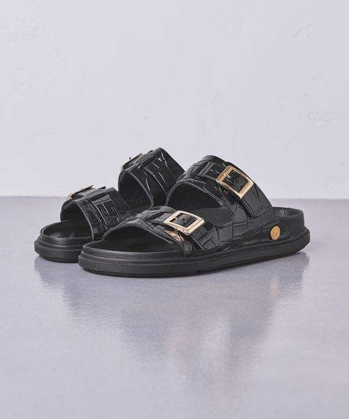ゴールドカラーのバックル、アッパーにはクロコの型押しレザーを使用し、オールブラックで仕上げた特別感のある別注アイテムです。