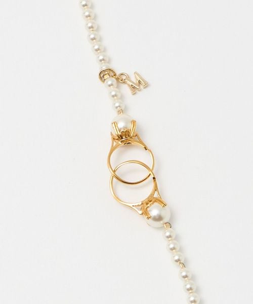 留め具にさりげなくイミテーションパールリングが隠れたコンテンポラリーなデザイン。