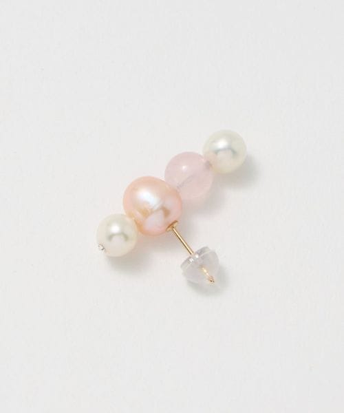 淡水パールとローズクォーツが生み出すフェミニンな雰囲気が魅力的なピアス