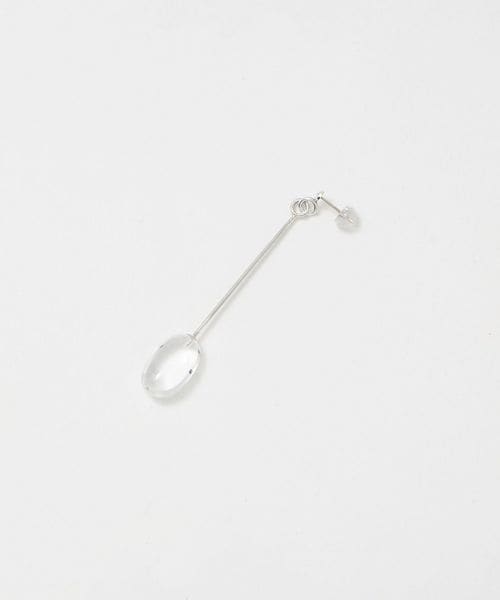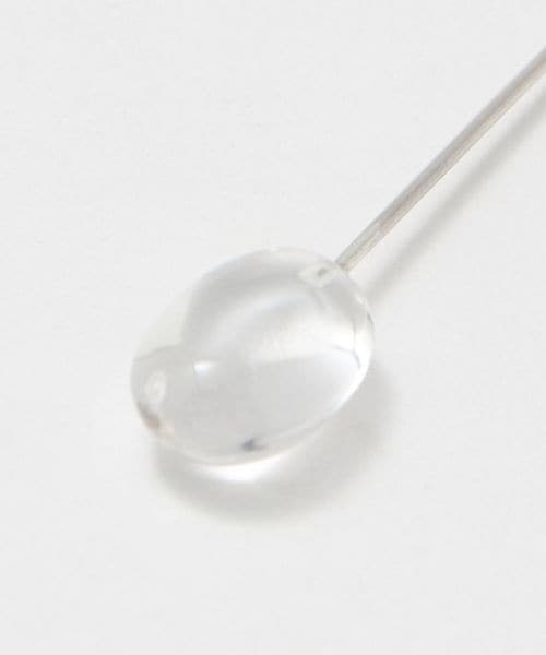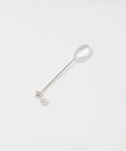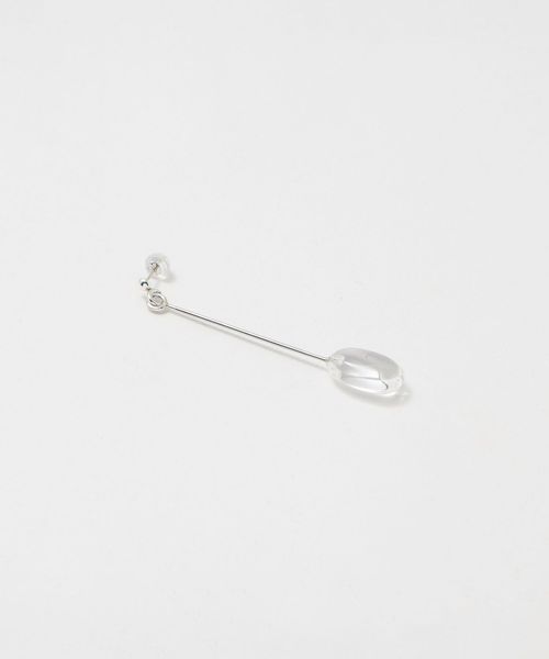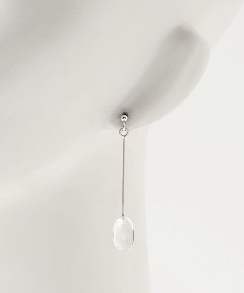 シルバーカラーのバーの先に、しずくのように垂れるクリアパーツがモダンなロングピアス。