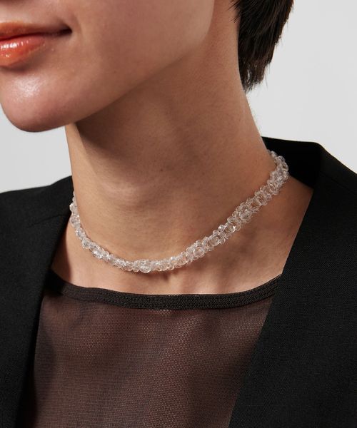瑞々しいクリアなパーツがランダムに光を放ち、首元のアクセントになります。