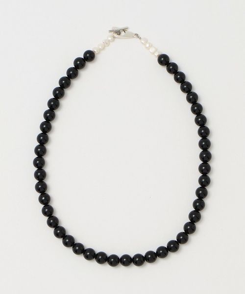 程よいボリューム感のブラックのオニキスを並べた、モードに着用できるネックレス。