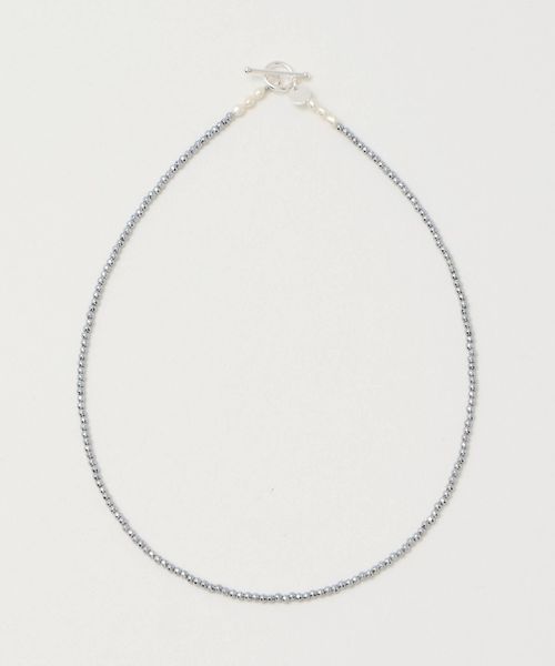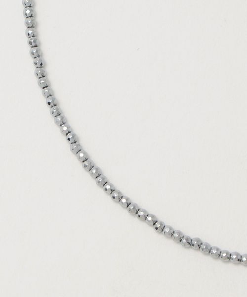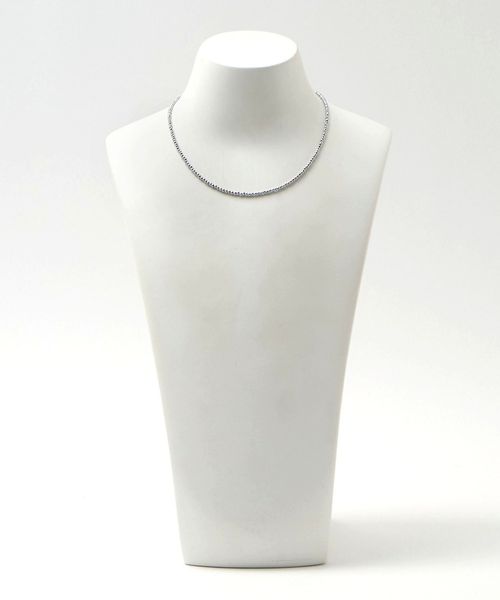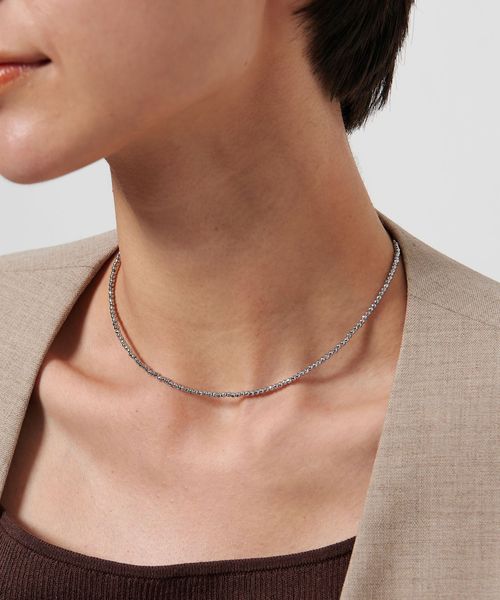 小粒ながらメタリックな光沢感が目を惹くチョーカー