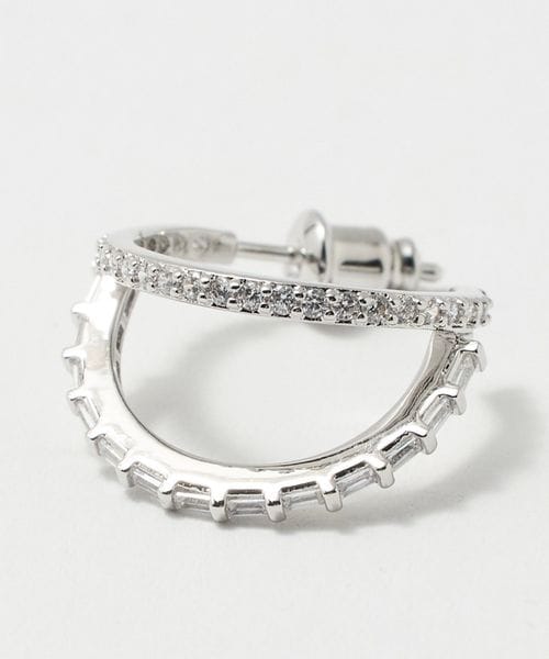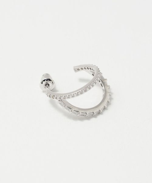 華奢な2本のラインに異なるシェイプのビジューをあしらったピアス。