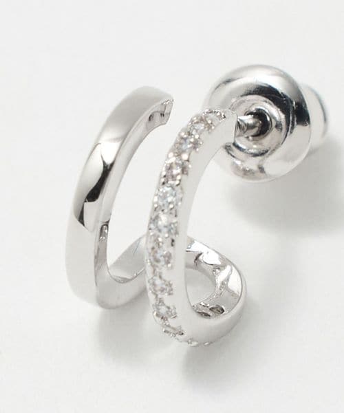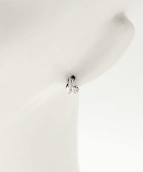 細やかなパヴェを散りばめたダブルラインがエレガントなピアス。